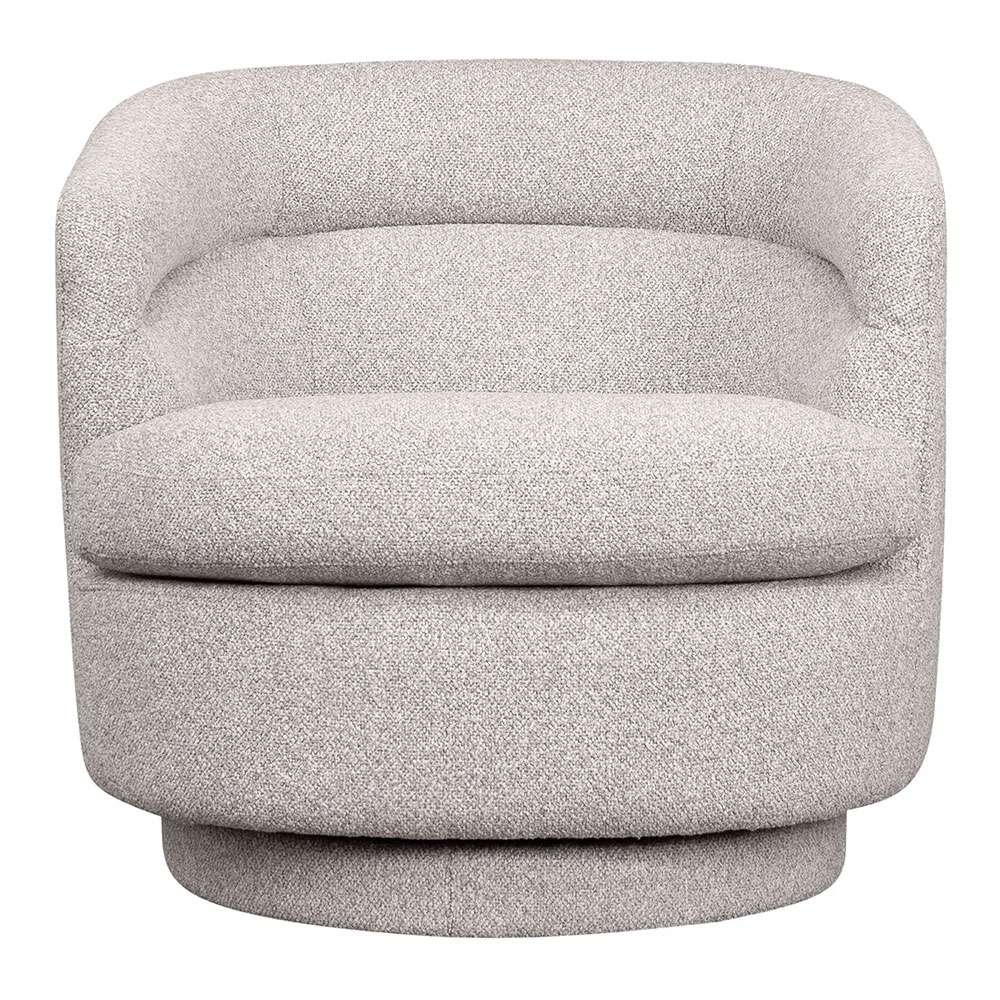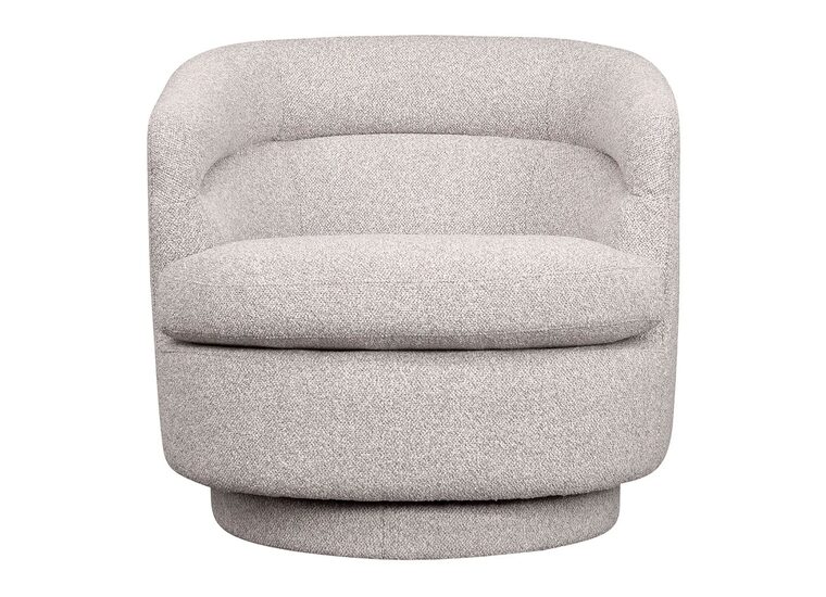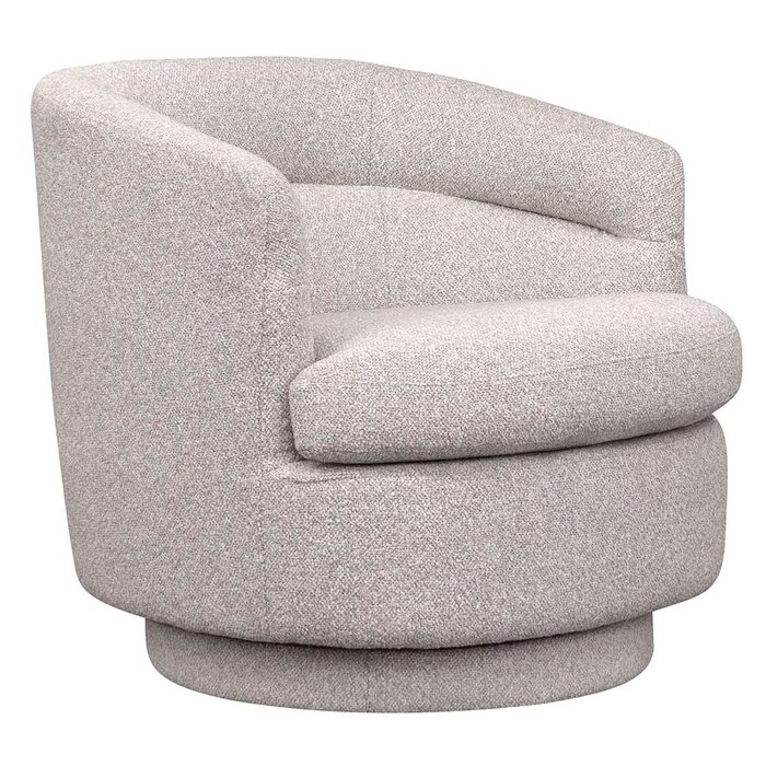 Featuring timeless appeal with a modern curved profile, 360-degree swivel action, and detailed channeled paneling in luxuriously soft looped yarn bouclé.