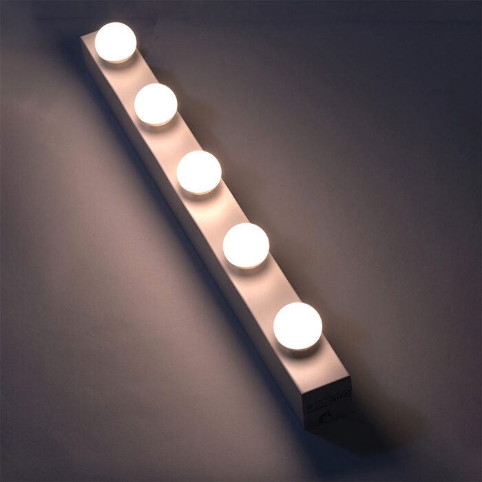 Single bar design, ideal for bathroom and personal lighting. Metal construction with frosted acrylic lenses.