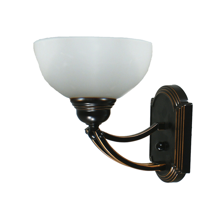 Traditional bronze coloured wall light with an upward facing opal glass.