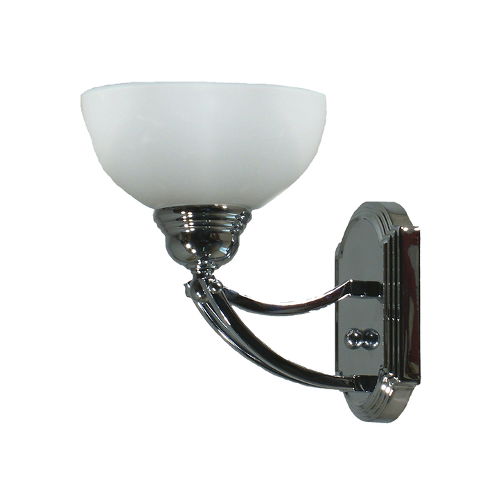 Traditional bronze coloured wall light with an upward facing opal glass.