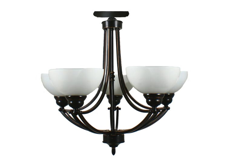 The classic opal matte glassware provides a soft, diffused light, while the striking frame design adds a bold statement to any room.