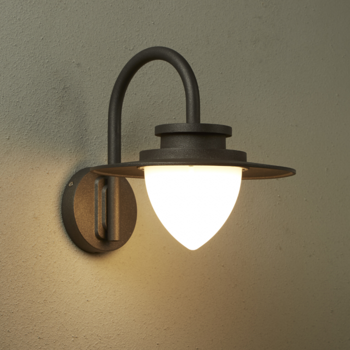 A traditional style high quality wall light. Made from die cast aluminium with opal polycarbonate diffuser. Comes in a sleek Graphite colour.