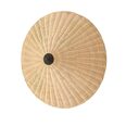 This protrusion juxtaposes the shade’s natural wicker material, creating a striking visual impact through its woven textural surface.