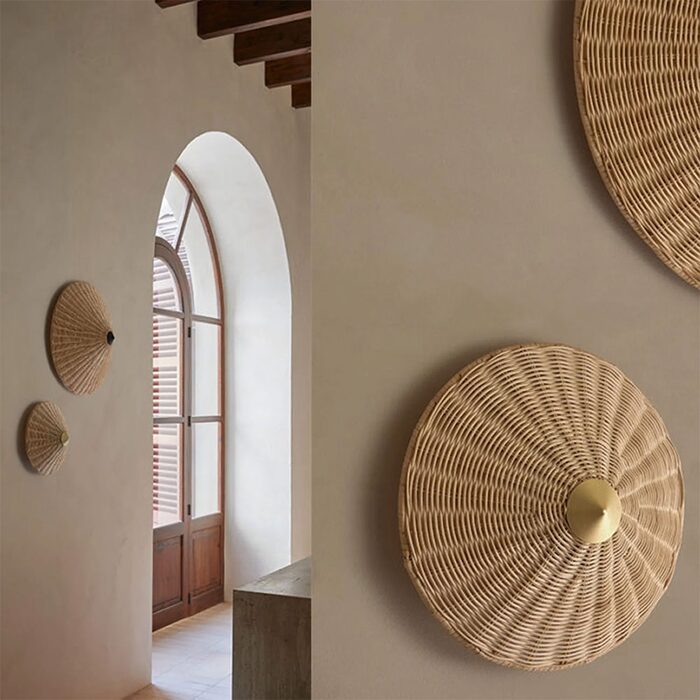 The Ibre Wall Light is a perfect way to incorporate a natural wicker motif to any space.