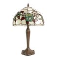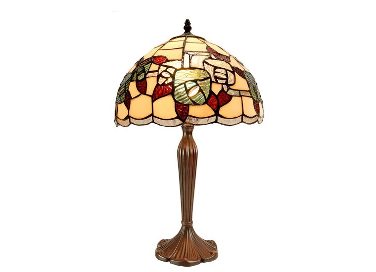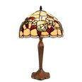 This beautiful Tiffany lamp features a handcrafted, genuine stained art glass shade combined with a resin base, carved in a traditional design with a brown neutral colour to juxtapose the lively art glass shade for maximum impact.