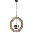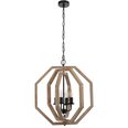 Crafted with a combination of wood and iron, this pendant exudes rustic elegance.