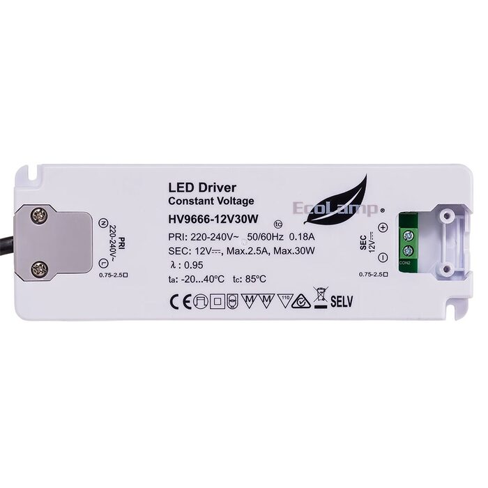 The Havit HV9666-12V30W is a 30W constant voltage (12V DC) indoor LED driver designed for residential or commercial lighting.