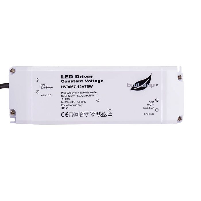 It features an IP20 rating, a 240V AC input, a 60W recommended maximum load (7W minimum), and a flex and plug for easy installation. This white, non-dimmable, 75-watt, 24-volt LED driver is also backed by a 3-year replacement warranty.