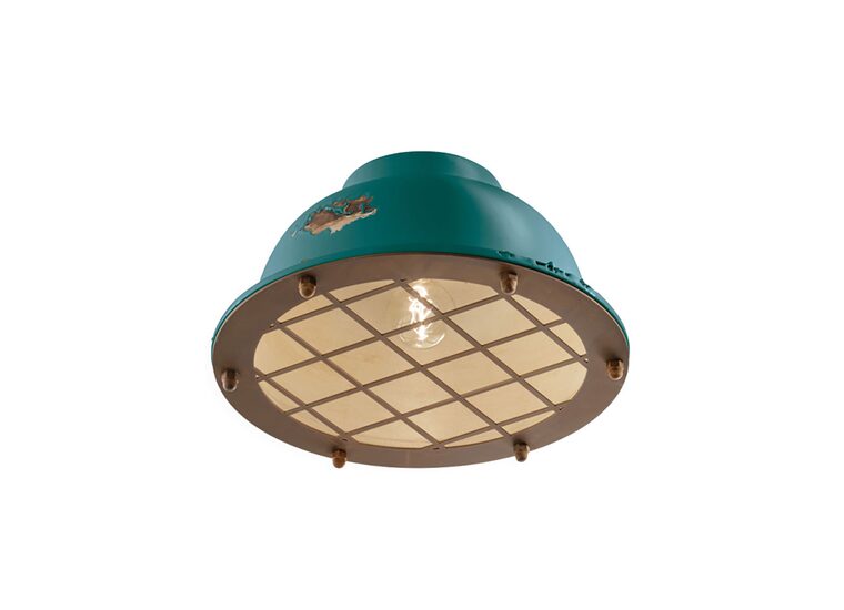 The Industrial Large Flush Mount Light in Vintage Green by Ferroluce adds a touch of retro-industrial elegance to any space.