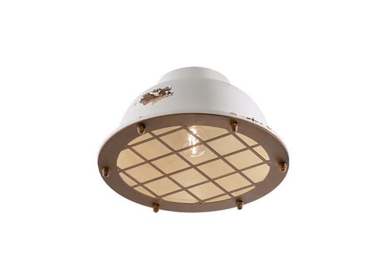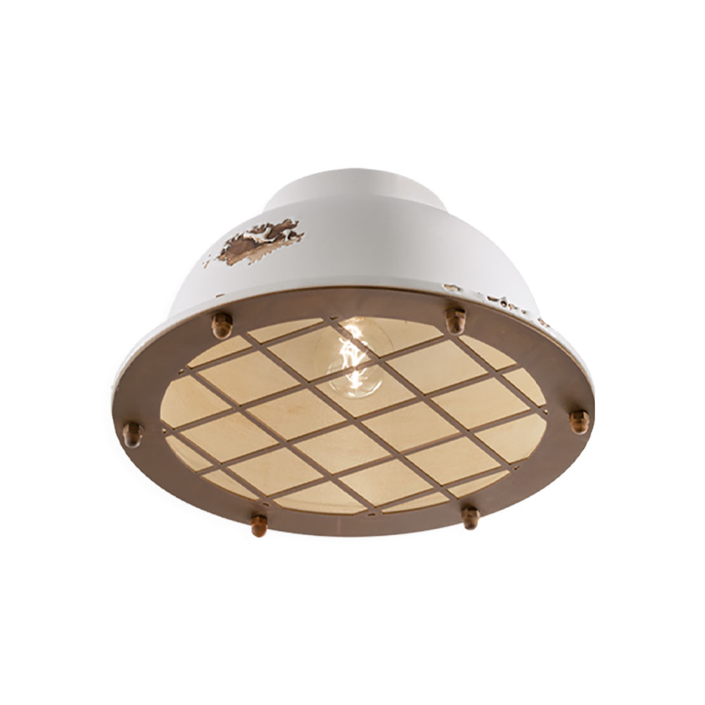 The Industrial Large Flush Mount Light in Vintage White by Ferroluce combines timeless elegance with industrial charm.