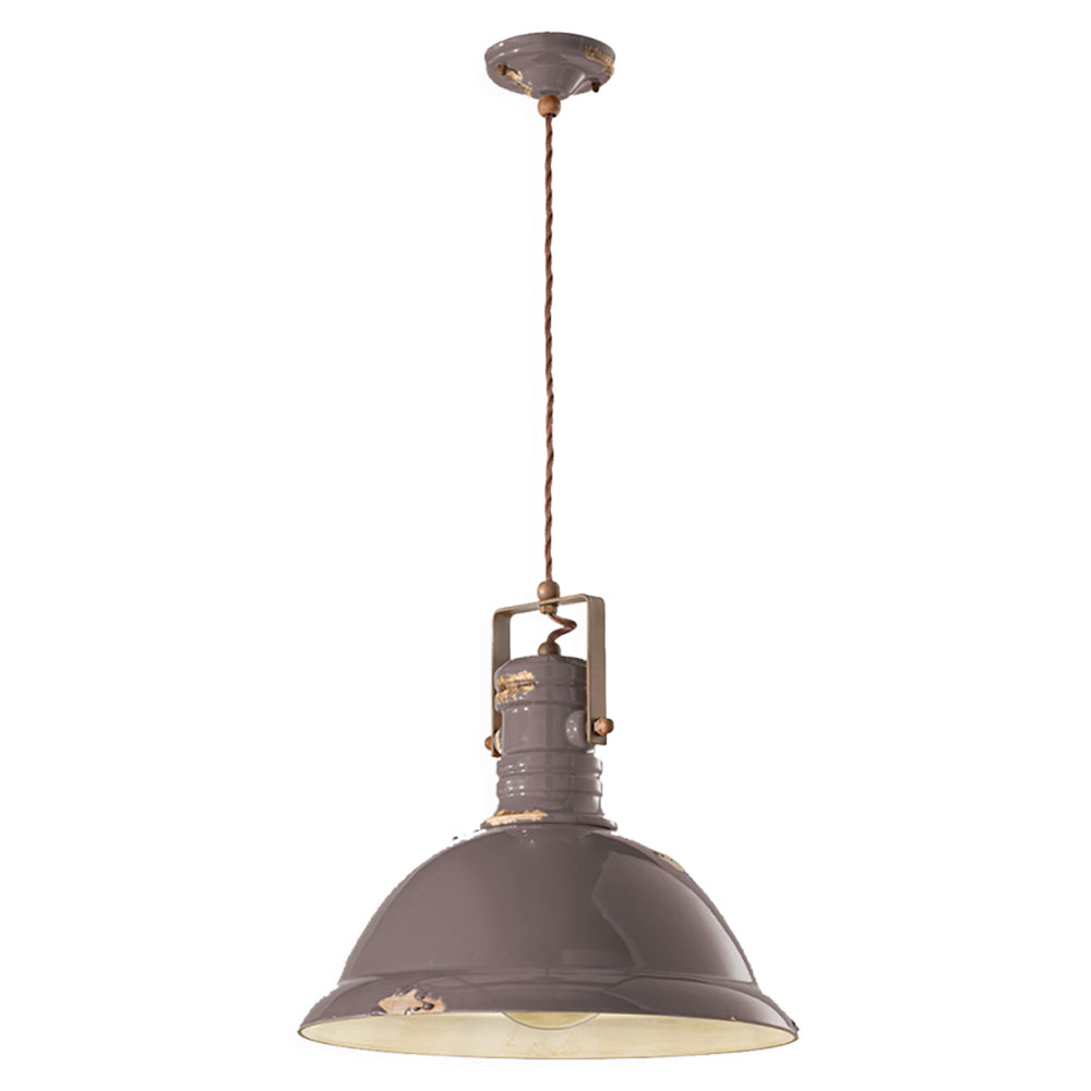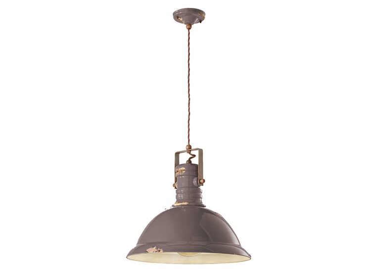 The Industrial Large Pendant Light in Vintage Dove Grey by Ferroluce showcases a nostalgic design with a refined distressed finish.