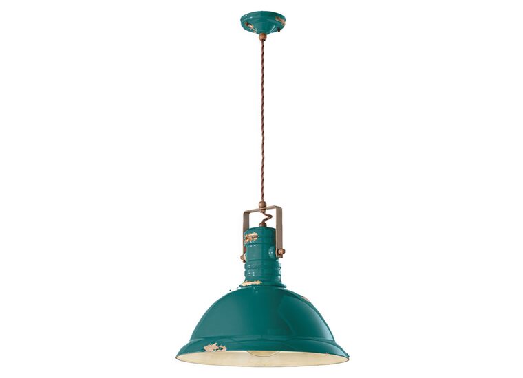 The Industrial Large Pendant Light in Vintage Green by Ferroluce showcases a nostalgic design with a refined distressed finish.