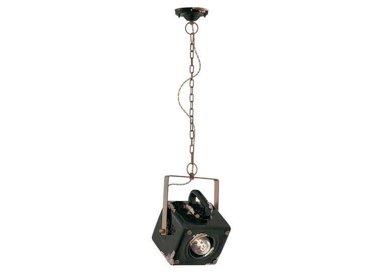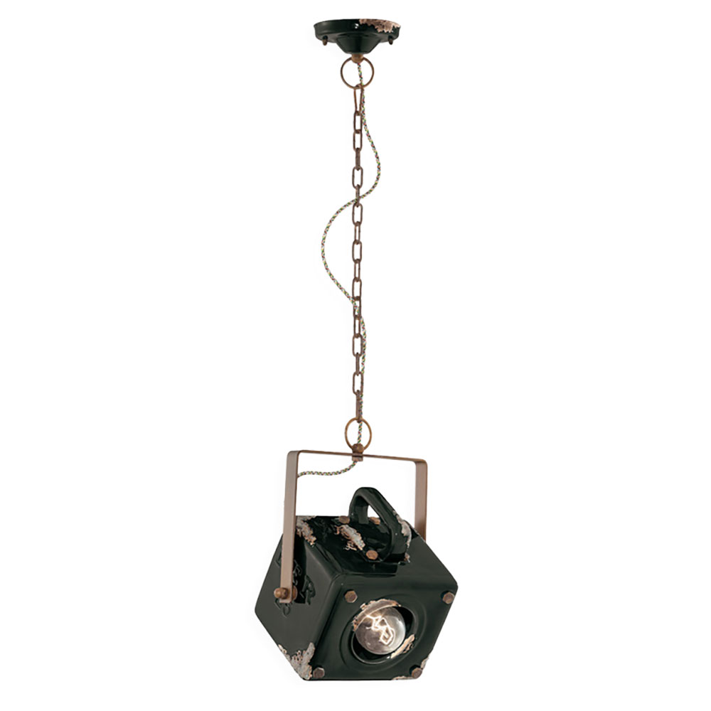 The Industrial W230 mm Pendant Light in Vintage Black by Ferroluce showcases a timeless design with a distressed finish.
