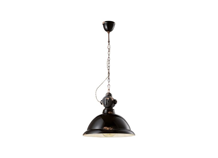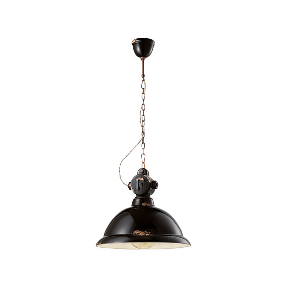 The Industrial 400mm Pendant Light in Vintage Black by Ferroluce showcases a bold design with a distressed finish.