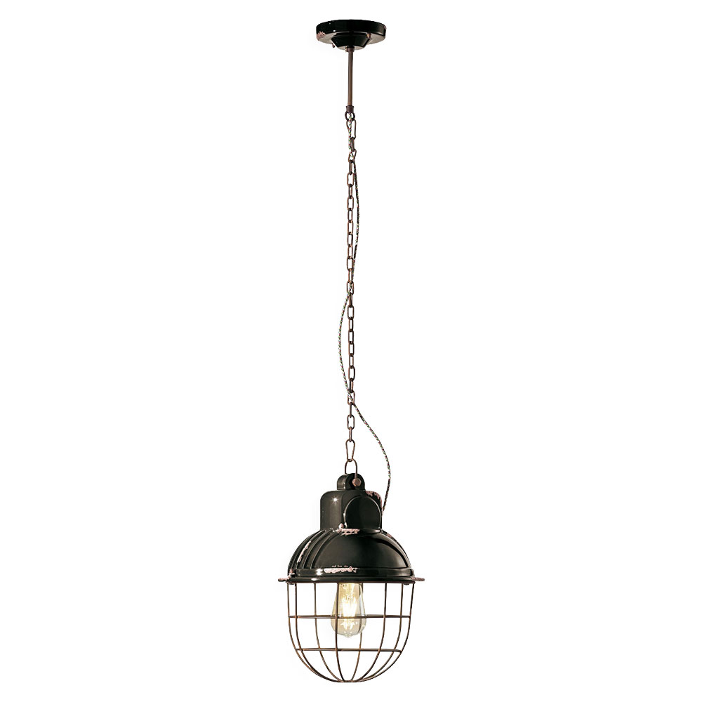 The Industrial 260 mm Pendant Light in Vintage Black by Ferroluce features a sleek design with a distressed finish.