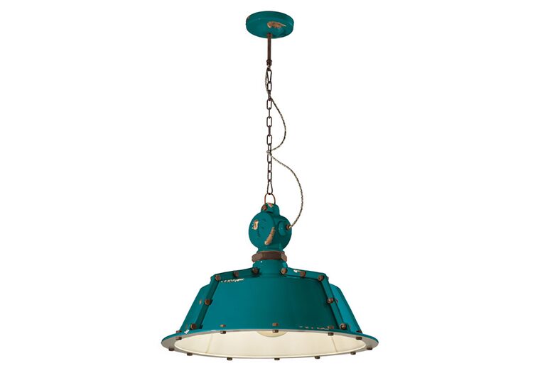 The Industrial 520 mm Pendant Light in Vintage Green by Ferroluce features a striking design with a distressed finish.