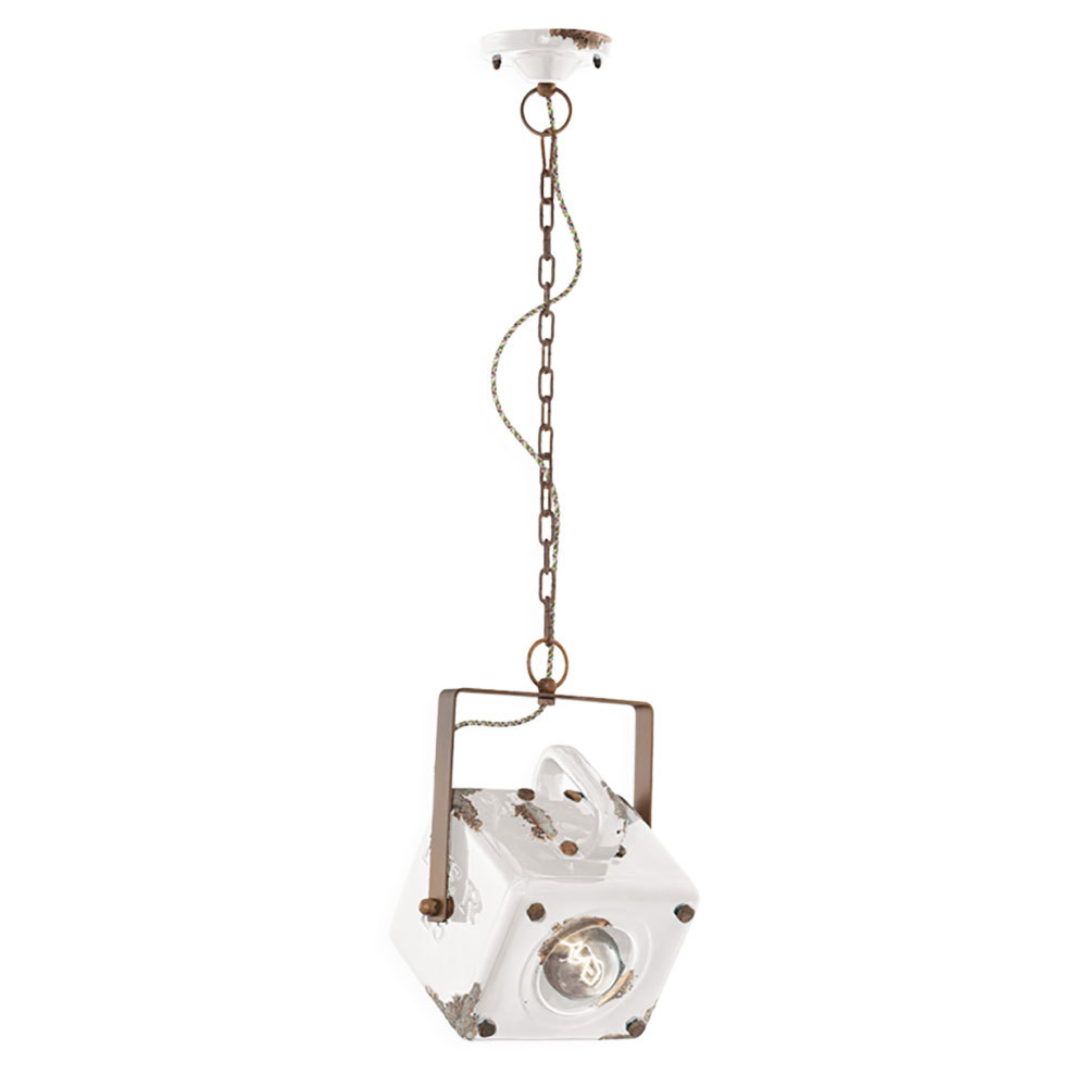The Industrial W230 mm Pendant Light in Vintage White by Ferroluce showcases a timeless design with a distressed finish.