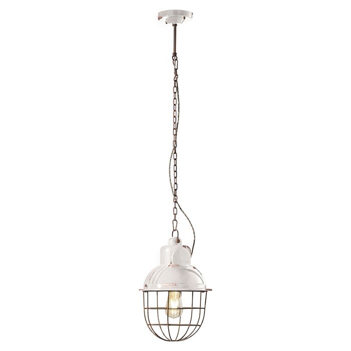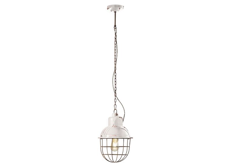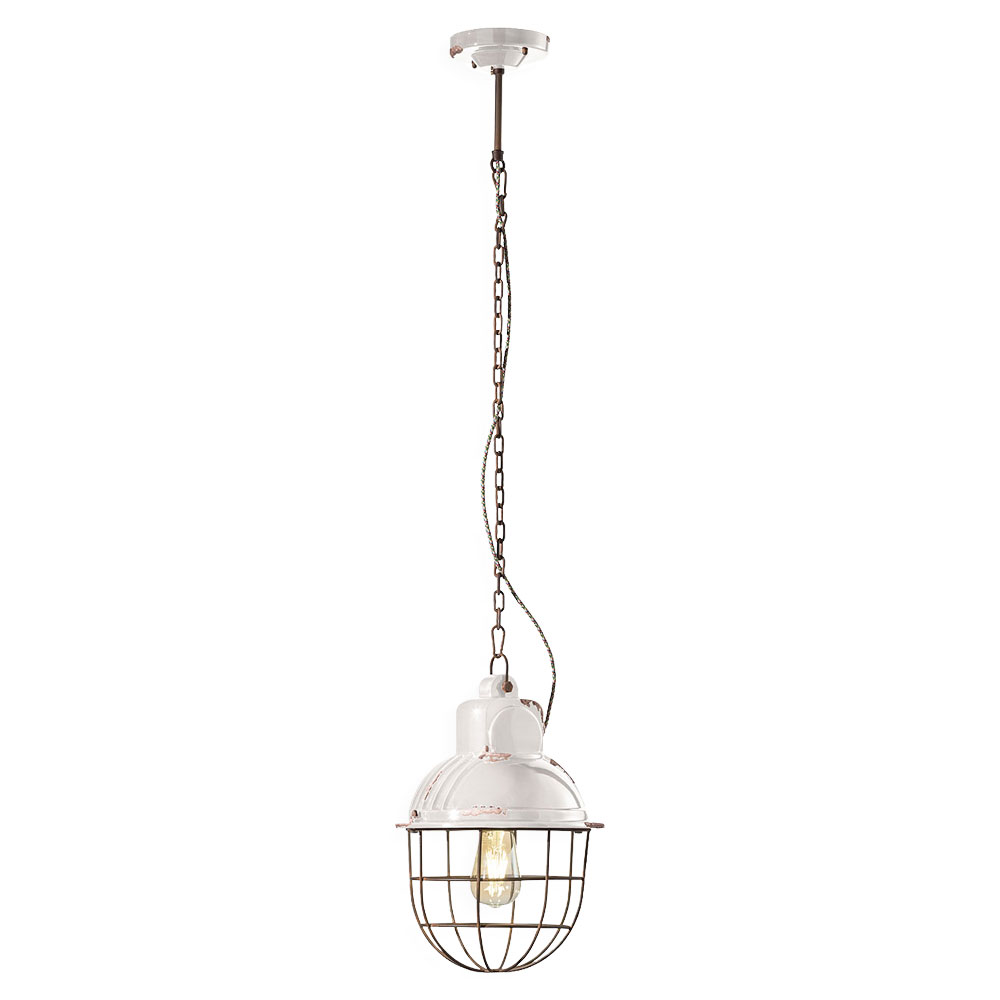 The Industrial 260 mm Pendant Light in Vintage White by Ferroluce features a timeless design with a distressed finish.