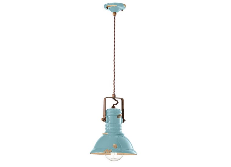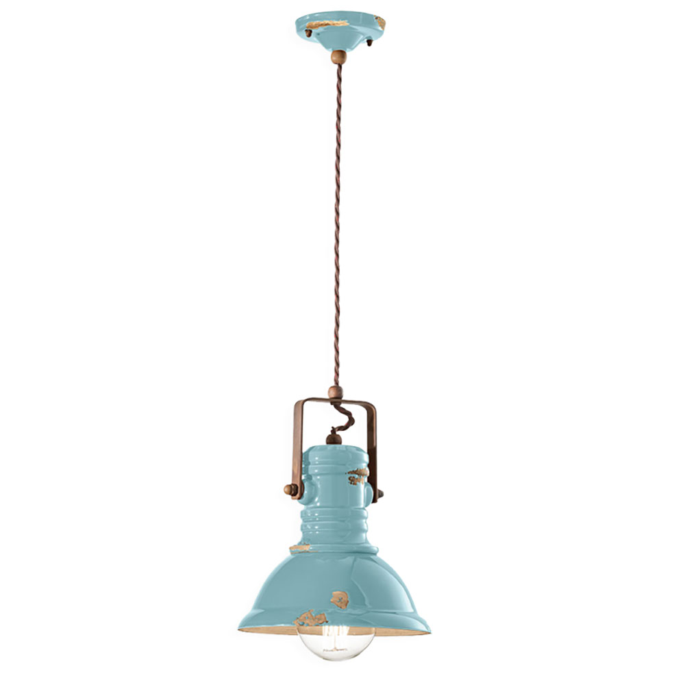 The Industrial Small Pendant Light in Vintage Light Blue by Ferroluce showcases a classic design with a distressed finish.