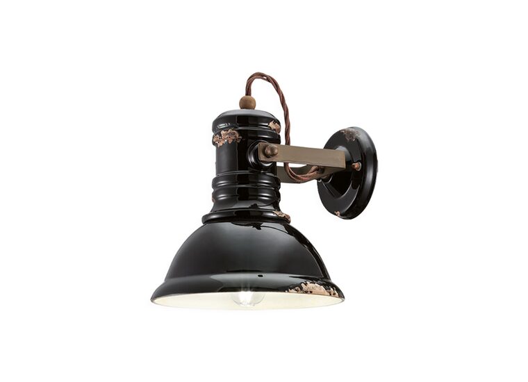 The Industrial Ceramic Wall Light in Vintage Black by Ferroluce showcases a timeless design with a distressed finish.