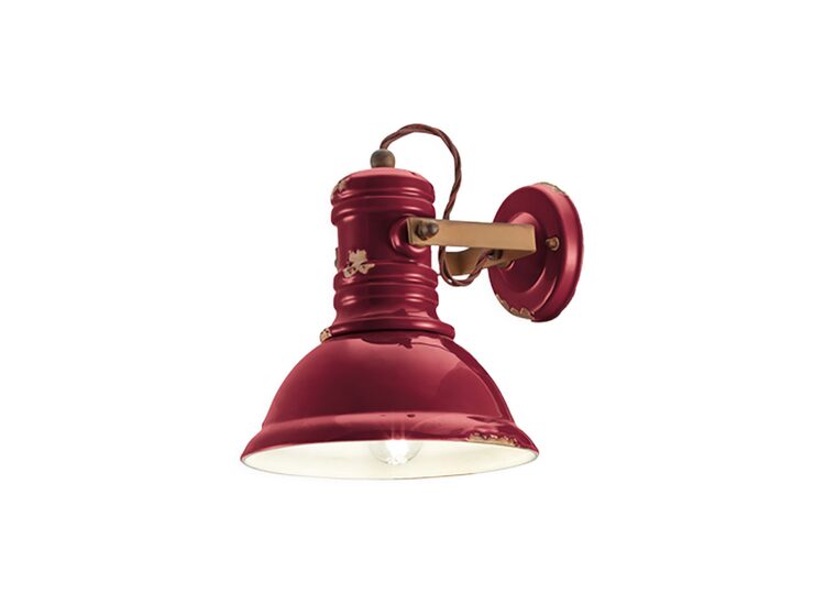 The Industrial Ceramic Wall Light in Vintage Bordeaux by Ferroluce features a classic design with a distressed finish.