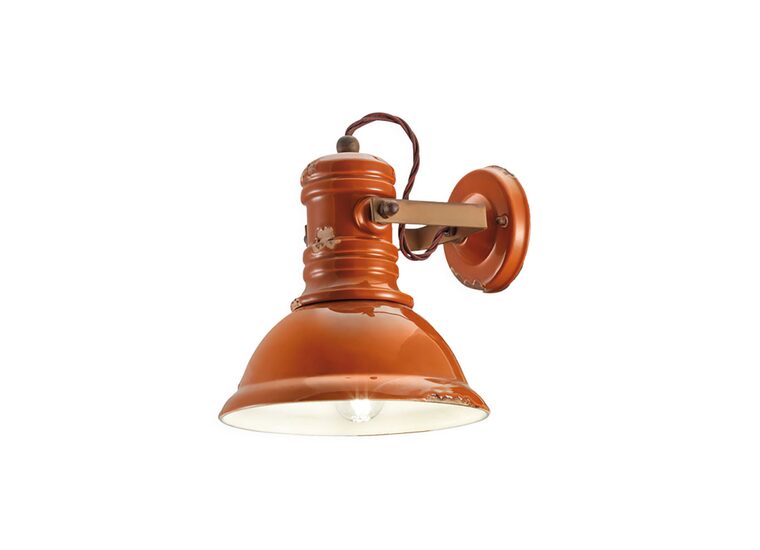 The Industrial Ceramic Wall Light in Vintage Orange by Ferroluce showcases a timeless design with a distressed finish.