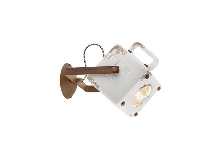 The Industrial 230 mm Wall Light in Vintage White by Ferroluce features a classic design with a distressed finish.