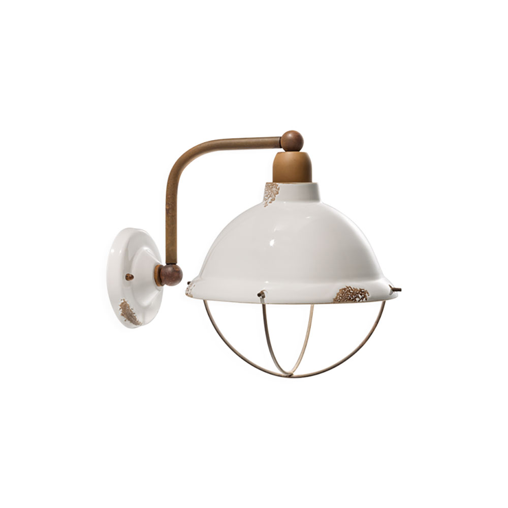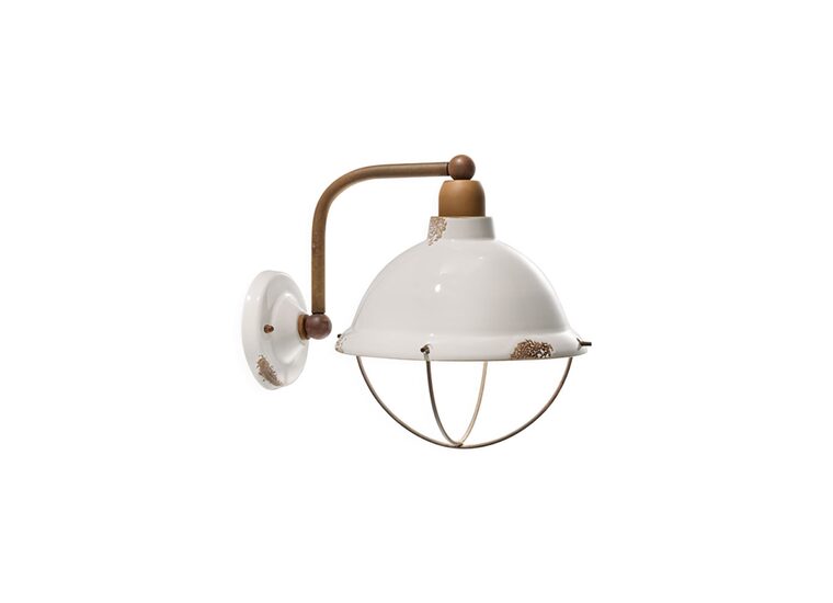 The Industrial Wall Light in Vintage White by Ferroluce offers a timeless blend of ceramic and metal.