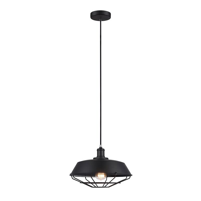 Matrix features a wide 360mm metal shade pendant, a black cord suspension and matching cage attachment.