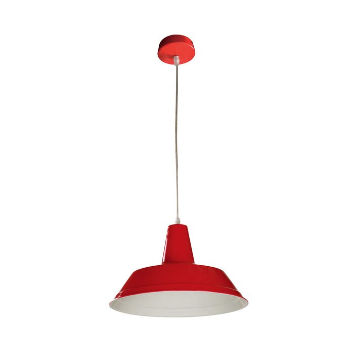Red metal complete pendant. Designer metal shade striking addition to your décor.