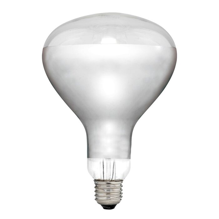 The InfraRed Heat Lamp is commonly used in bathroom heaters and in restaurants in food warmers. These globes have an E27 (standard edison screw) 240V base.