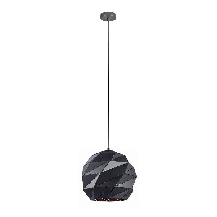 The Origami Pendant features carved iron in a spherical ball shape, elegantly put together for a dramatic impact.