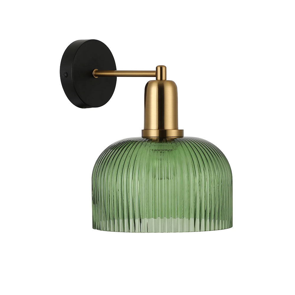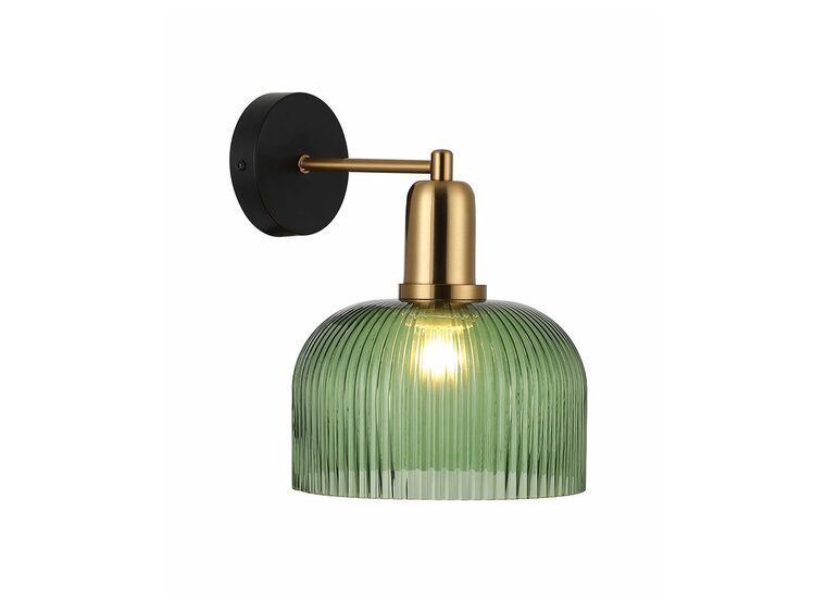 Interior Dome Glass Wall Light Antique Brass Highlight With Green - VINTAJ2W