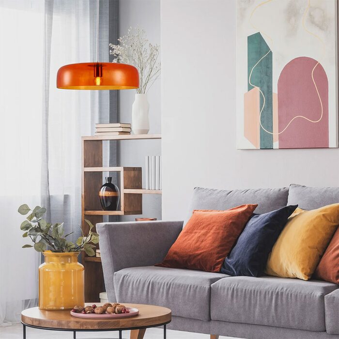 Interior Dome Glass With Brass Highlight Pendant Orange - GELATINA2