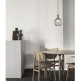 The Quadrilateral art glass is semi-translucent to showcase the mechanics of a filament globe, while the metalware design is no-frills to keep the look streamlined and sleek.