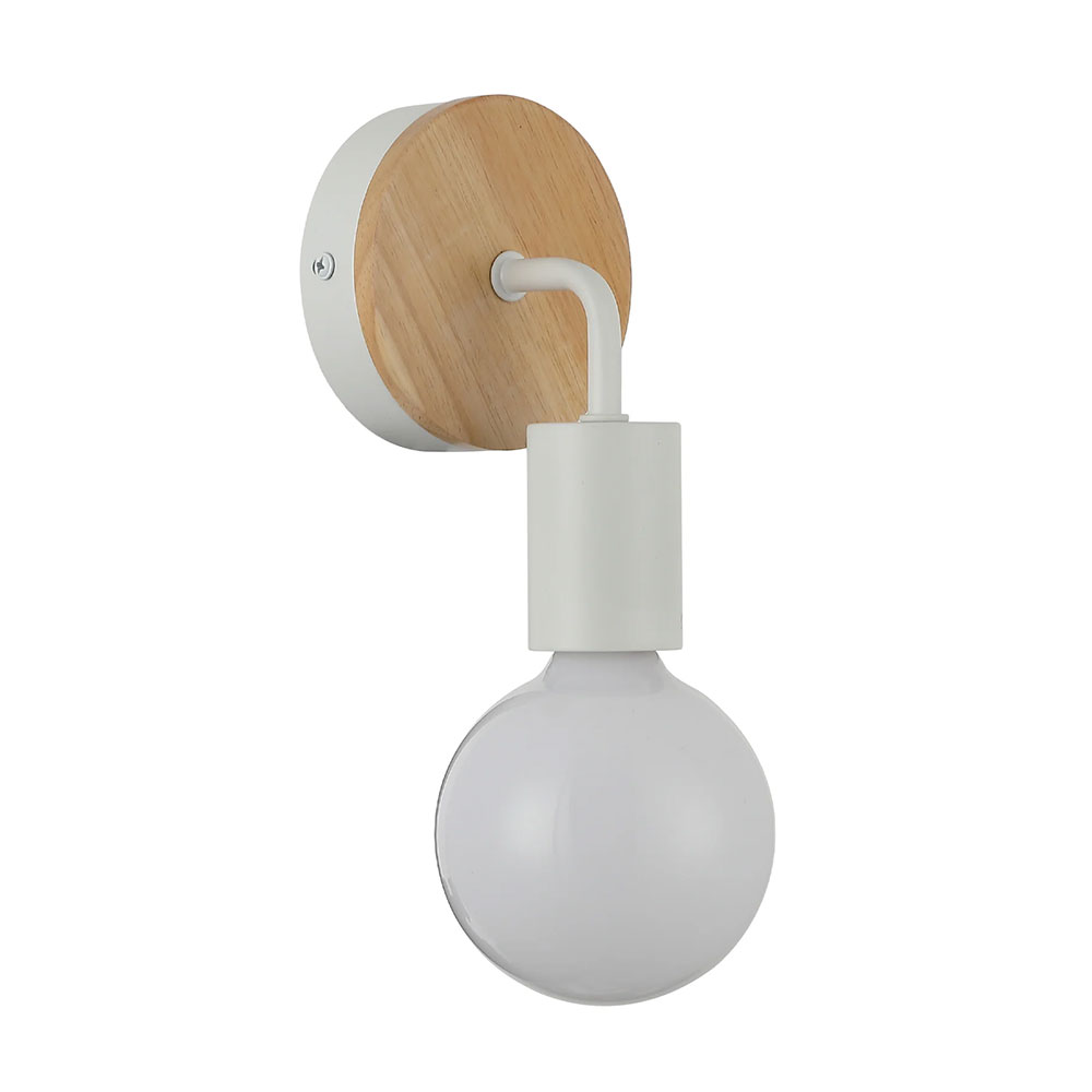 - Fixture Colour: White Iron Bracket With Round Wood Highlight