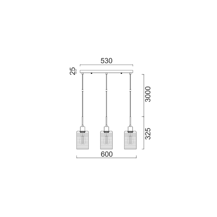 Interior Oblong 3 Light Chrome Glass Pendant - ESPEJO1X3S