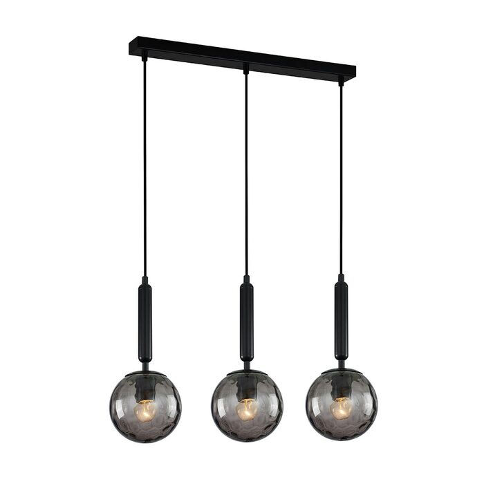 The black frame with smoke shade creates a unique look showing off the bulb inside. Use a decorative bulb to create your own design expression.