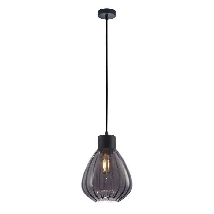 The black frame with smoke shade creates a unique look showing off the bulb inside. Use a decorative bulb to create your own design expression.