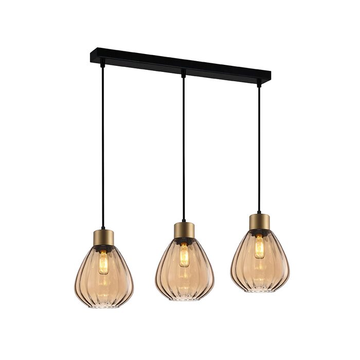 The bronze frame with amber shade creates a unique look showing off the bulb inside. Use a decorative bulb to create your own design expression.