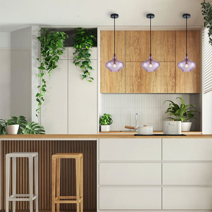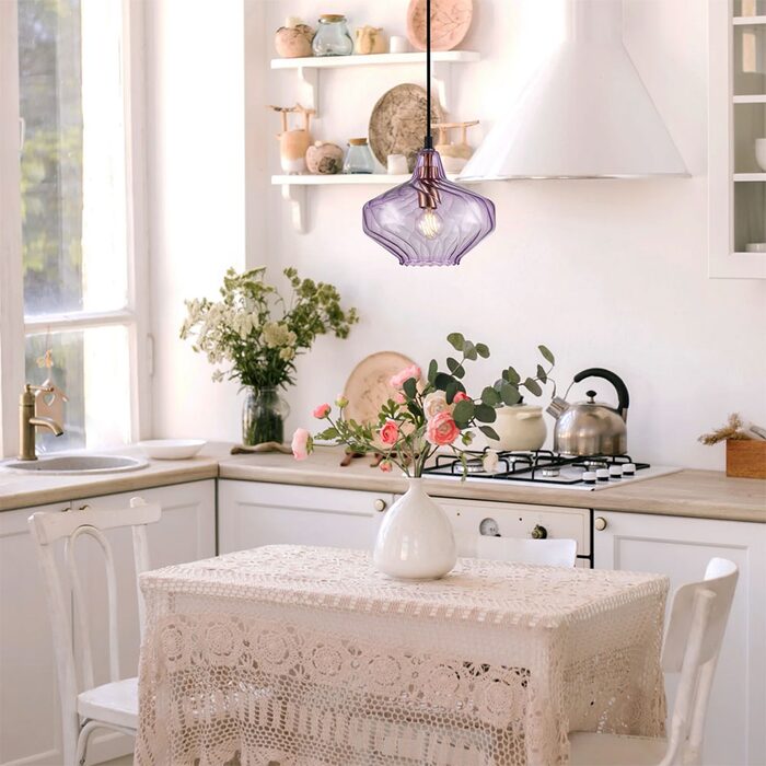 Interior Wine Glass Shape Ribbed Pendant Light Purple - CAMPANA3