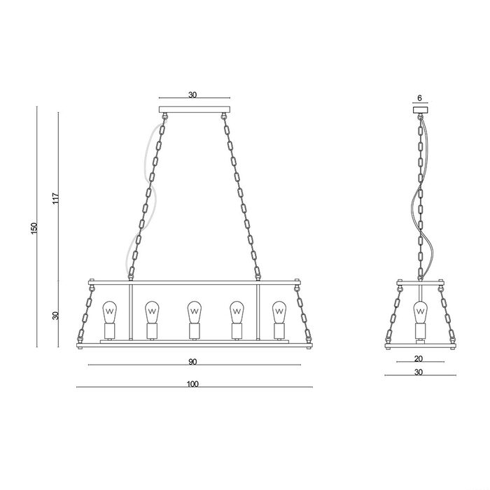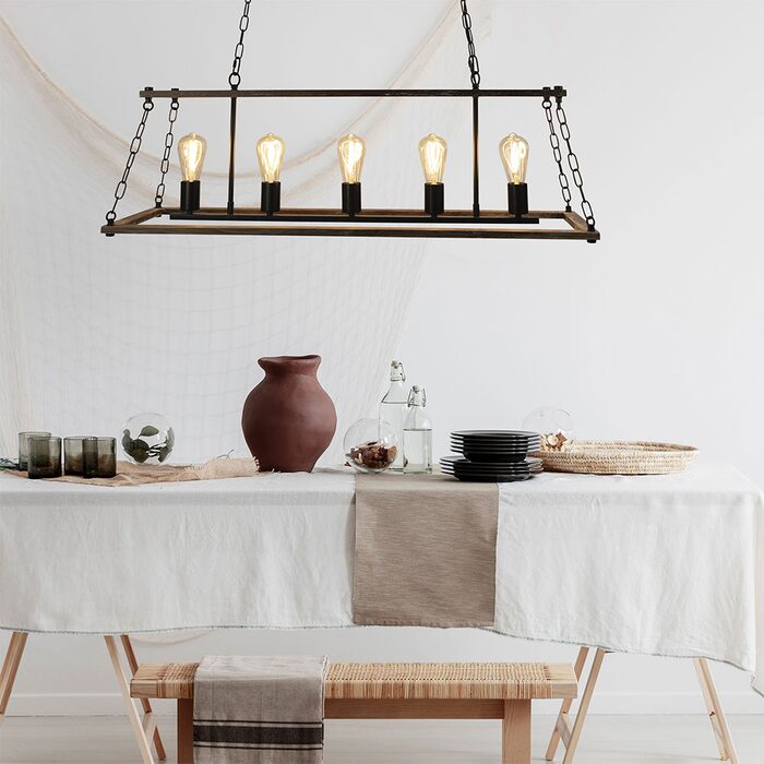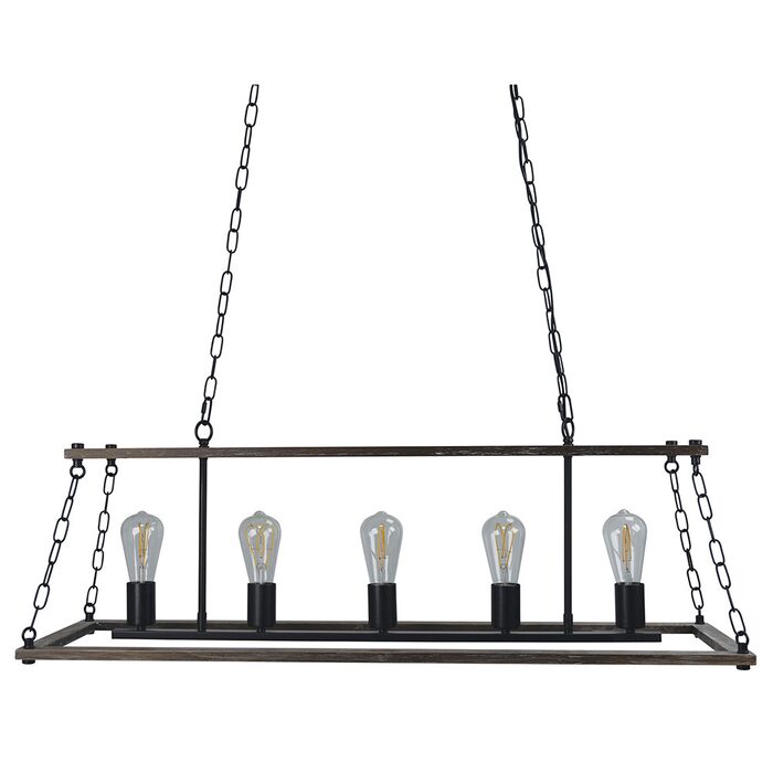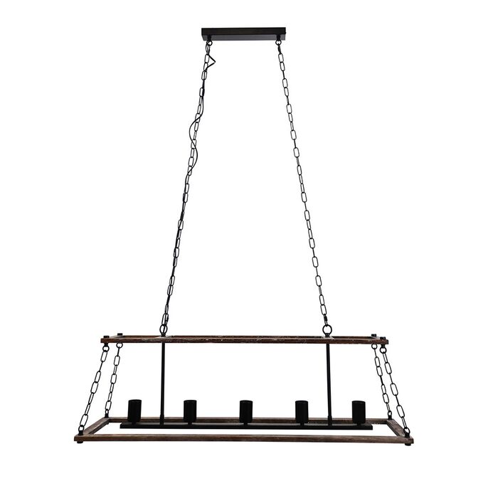 The ISLAND 5 light pendant is crafted from distressed timber, with chain suspensions. Each Island will have a unique finish.