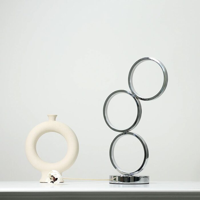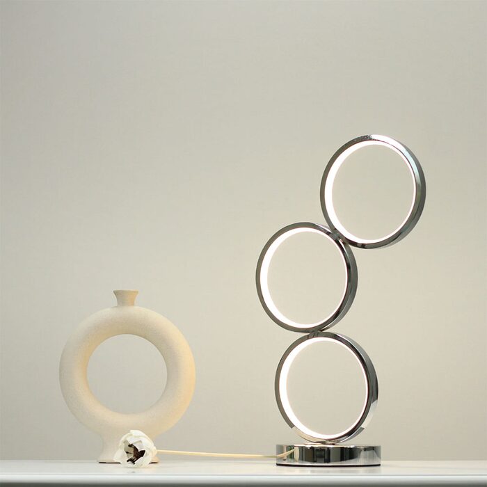 The Iva LED Table Lamp is a beautiful design with three unique circular LED lights that sit upon each other in an unbalanced and misaligned way.