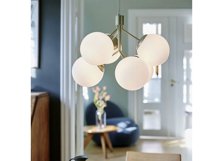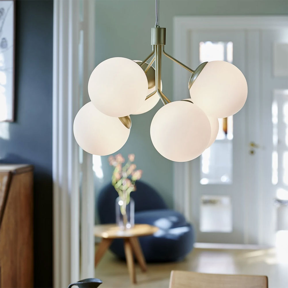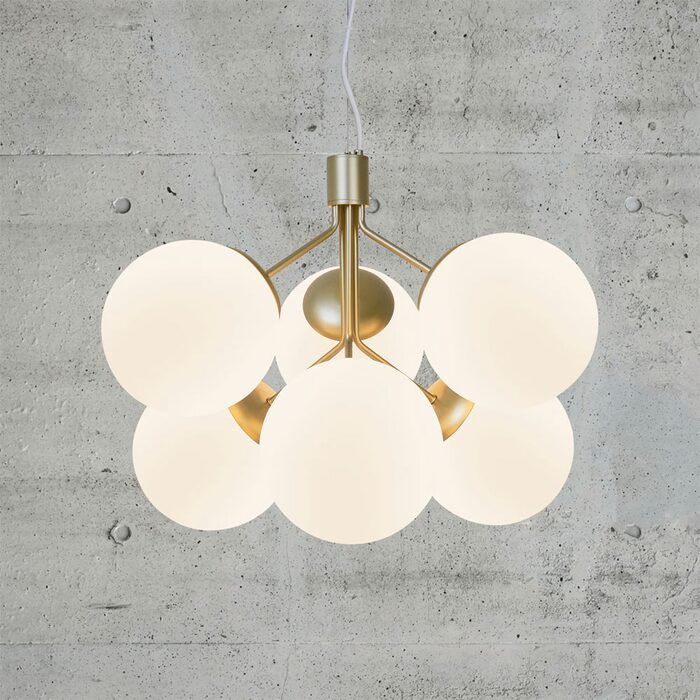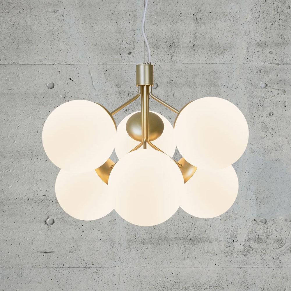 The combination of brass and opal glass creates a glamorous and elegant design expression.