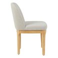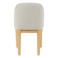 Upholstered in soft natural-toned fabric, its gently curved backrest and cushioned seat offer a refined yet inviting feel.