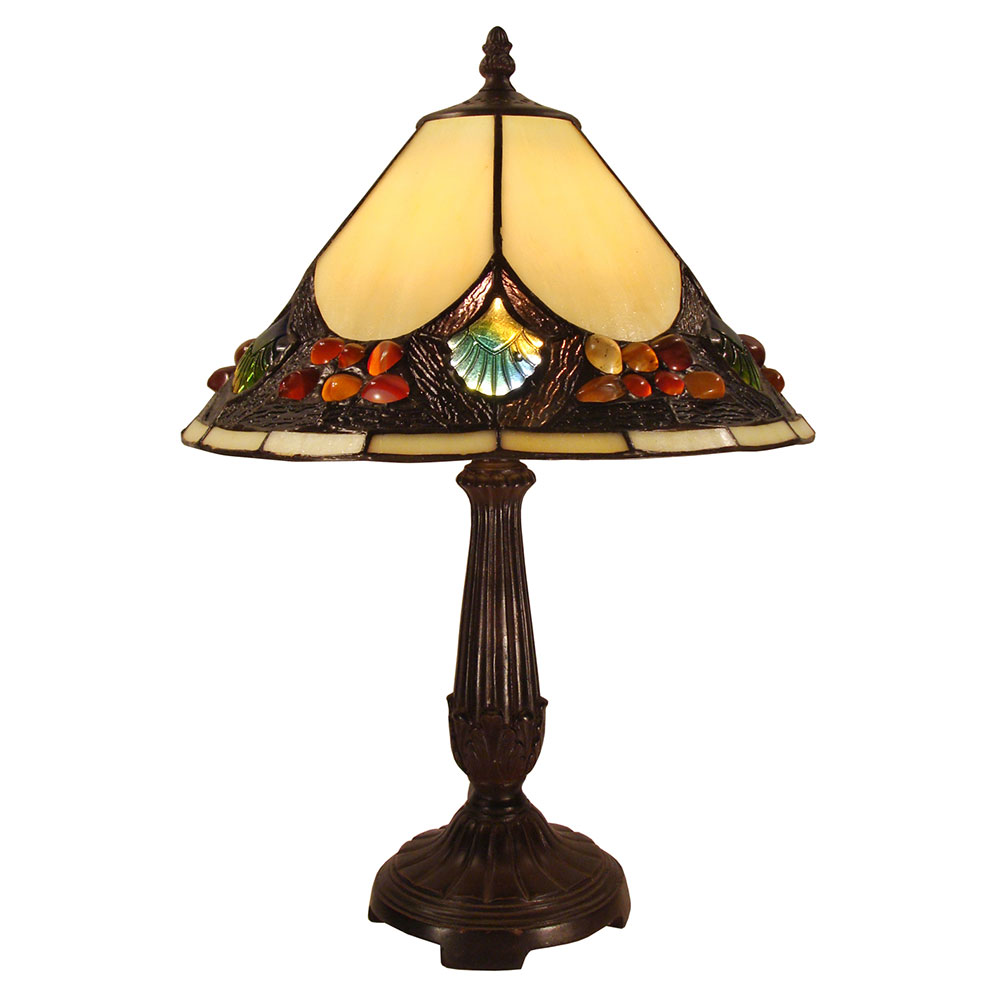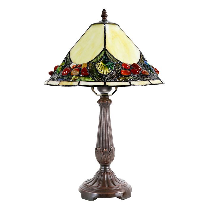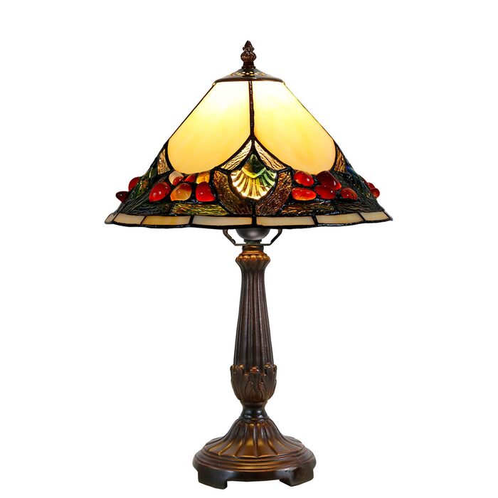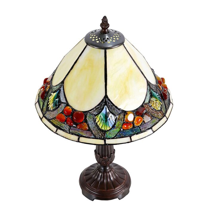 Illuminate your space with the stunning Janay Stained Glass Beige Table Lamp.