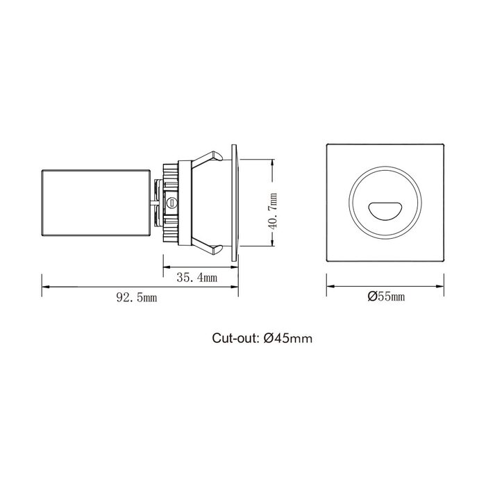 - Cutout: 45mm