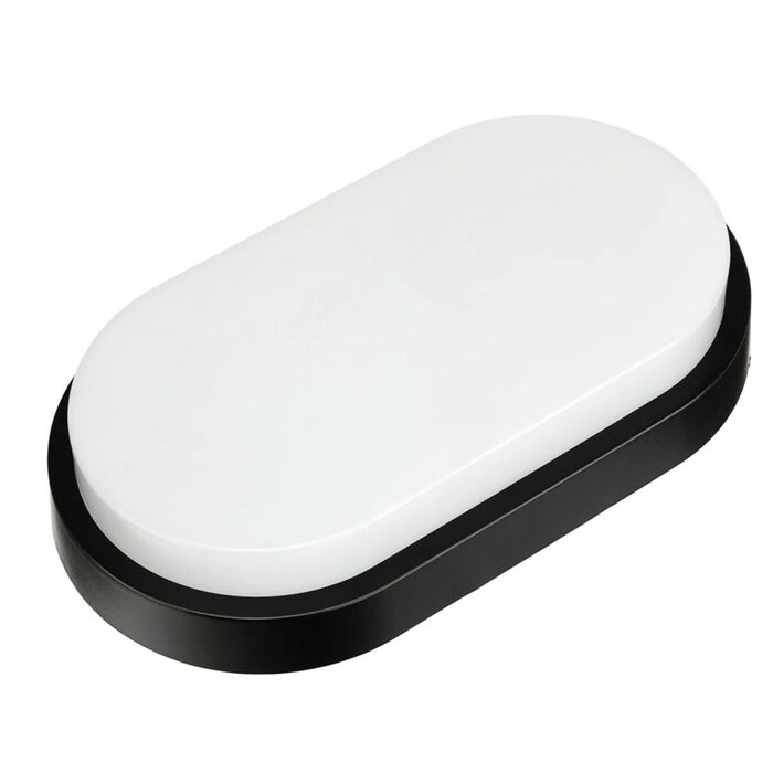 A modern, slimline round bunker wall light that illuminates exteriors with bright, even white light.