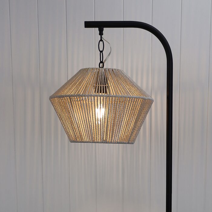 Jess Floor Lamp Black With Padang 33 String Shade - OL93773BK + OL64485/33