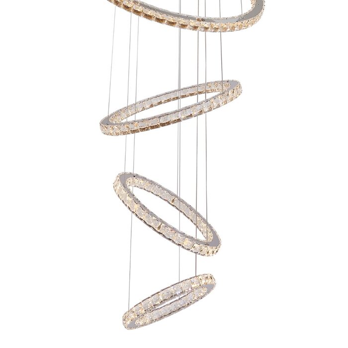With its exquisite crystals, this elegant pendant enhances large void areas, grand entry halls, or expansive living rooms.